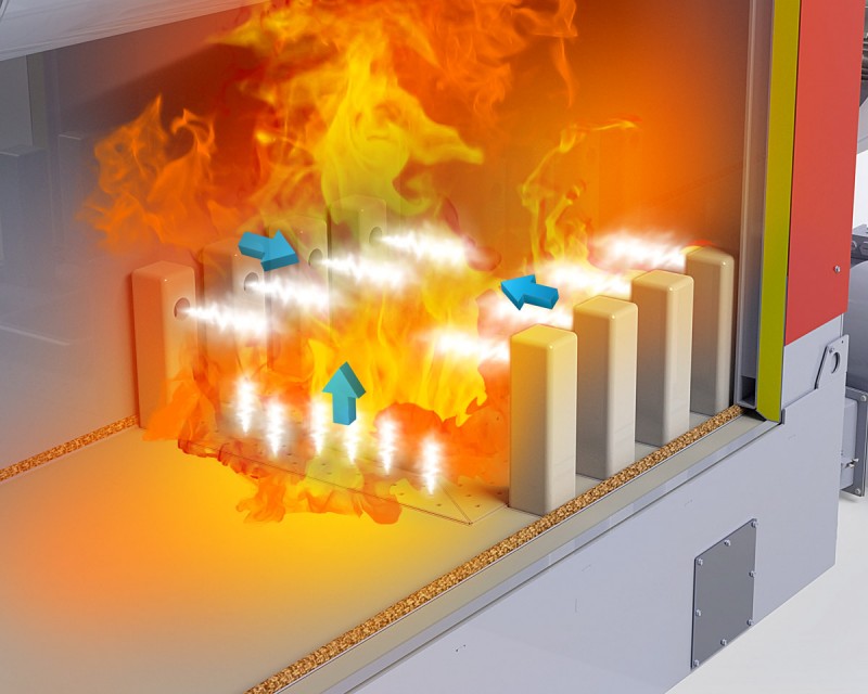 Траектория подачи и движения воздуха в зоне горения  не имеет аналогов на рынке и является гордостью завода FACI.