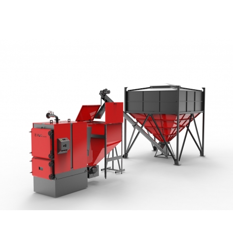 Бункер DI STRADA 22 куб.м и пеллетный котел FACI связываются одной системой управления FACI и работают как единый целый организм.
